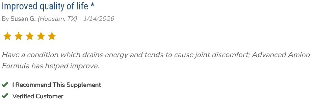 - You will continue to see dramatic improvements. That’s because Advanced Amino Formula works for the long term.